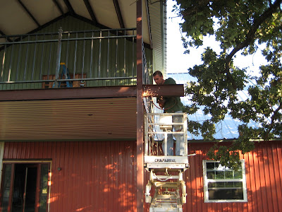 Saturday, Jason and dad worked on building the rail for the balcony on the back of the house.