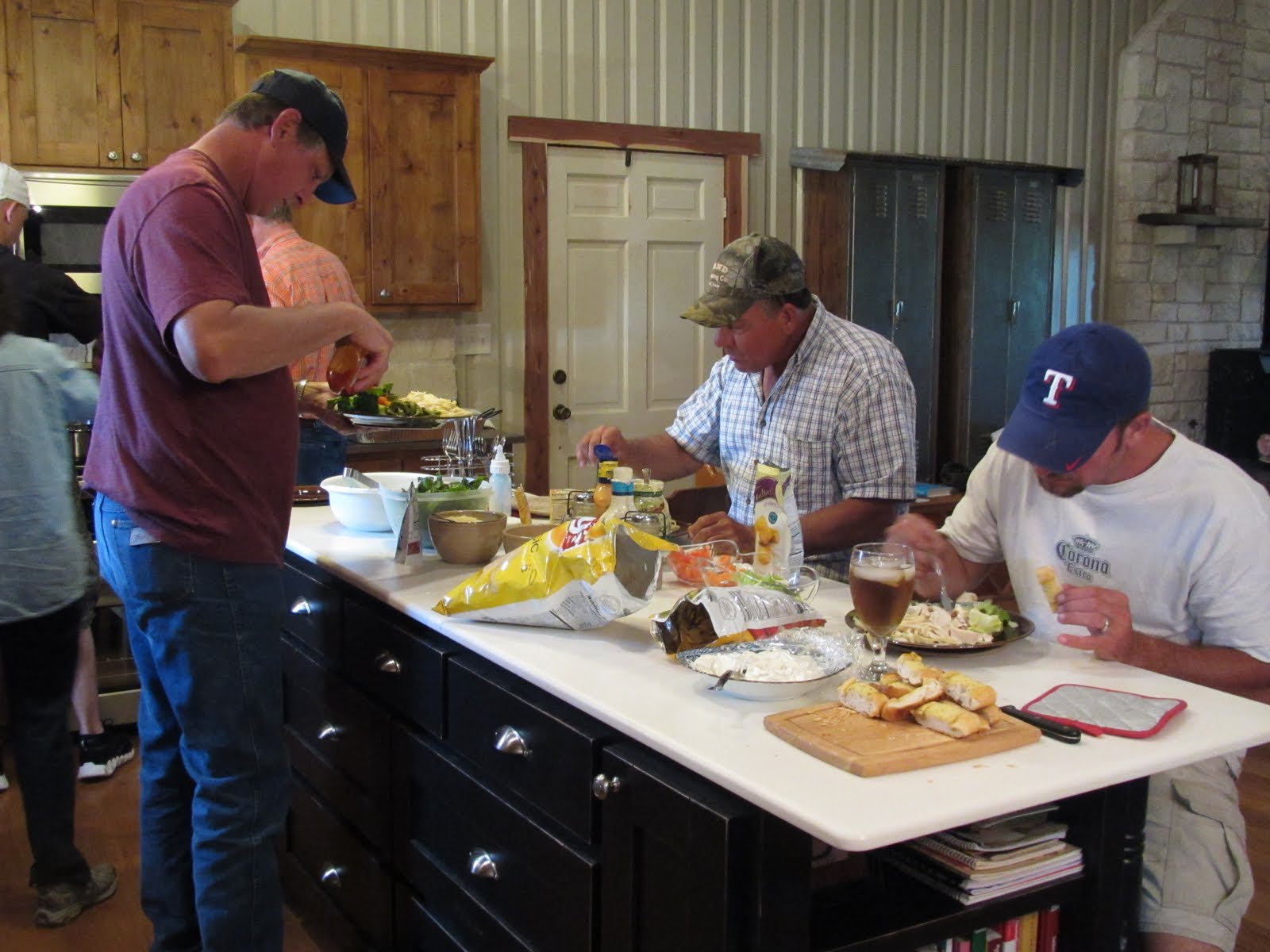 The guys played horse shoes.